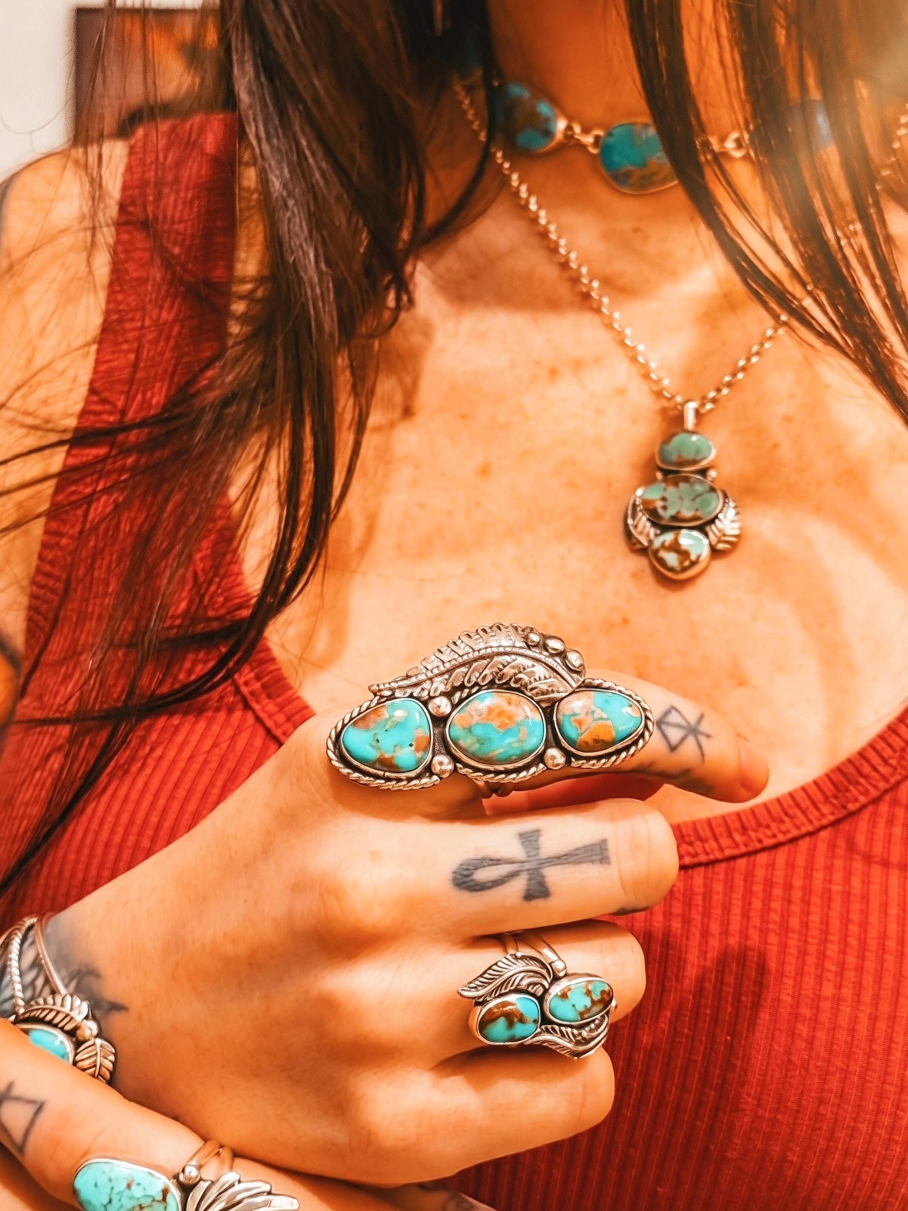 Bold, soulful, and one-of-a-kind — the statement rings at Violet & Stone Jewelry Co. are made to stand out while feeling deeply personal. Each piece is handcrafted in sterling silver and turquoise, designed to carry intention and energy you can feel every time you wear it. These rings are more than jewelry — they’re small works of art, created to remind you of your strength, your story, and your connection to the beauty of the desert.